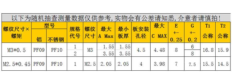 材質(zhì):PF09鋁、PF10不銹鋼