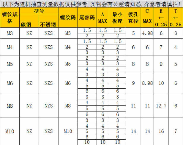 鍍鋅六角無滾花漲鉚螺母NZ-M3-M10簡介:漲鉚螺母,外形呈圓柱狀,是用于鈑金鉚接的一種緊固件。通過漲鉚的方式鉚接在薄板上,形成一個有效固定的內螺紋。